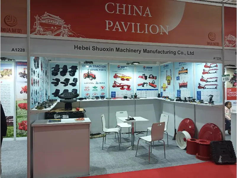 In qualità di produttore, distributore e fabbrica leader in Cina, Hebei Shuoxin Machinery Manufacturing Co., Ltd., insieme alla sua leadership, al team di vendita avanzato e al team tecnico, hanno partecipato alla fiera turca. Shuoxin Machinery è un rinomato produttore di macchine agricole, che fornisce attrezzature e accessori per macchine agricole di alta qualità a clienti in tutto il mondo. Per oltre un decennio, le sue esportazioni sono state molto apprezzate dai suoi clienti.